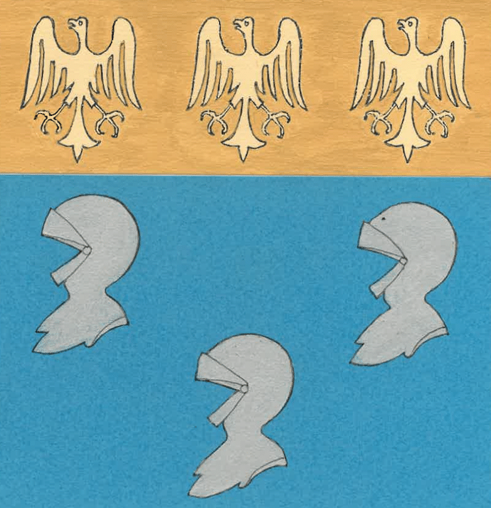 Les trois casques d'argent sur fond d'azur et les trois aigles de sable sur fond d'or